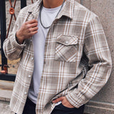 Manfinity casualmax chaqueta casual de manga larga con botones frontales y bolsillo a cuadros para hombres de talla grande, chaqueta a cuadros de franela con bloques de color para salir, regalo para amigos, esposo, novio