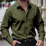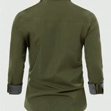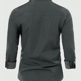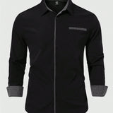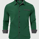 Manfinity mode camisa de negocios informal de manga larga con botones delanteros y parches de unicolor para hombres de talla grande