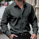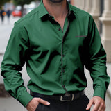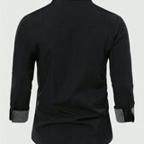 Manfinity mode camisa informal de negocios de manga larga con botones en la parte delantera y diseno de patchwork de unicolor para hombres talla grande