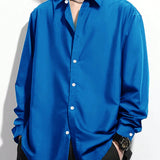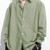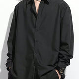Manfinity hypemode camisa casual de manga larga de un solo abotonado y holgada de unicolor para hombre de talla grande, para otono