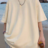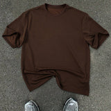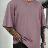 Emrg camisa casual de cuello redondo de manga corta minimalista para hombre, para uso diario