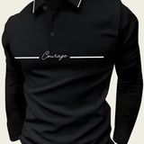 Camisa polo de manga larga con estampado de 'courage' para hombres, atuendo casual y de vestir casual para otono/primavera, ligero e ideal para salidas diarias, para golf