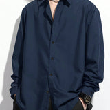Manfinity hypemode camisa de manga larga casual con botones de unicolor para hombres de talla grande