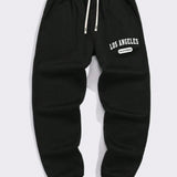 Pantalon de chandal informal con bolsillo de cordon y estampado de letras para hombres de talla grande