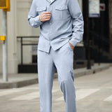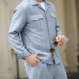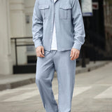 Manfinity casualcool conjunto de 2 piezas de camisa de manga larga de botones de unicolor con bolsillo y pantalon largo con bolsillo lateral para hombre
