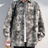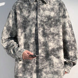 Camisa de manga larga con botones y estampado de tie-dye de pana para hombre, chaqueta ligera para primavera y otono