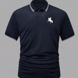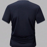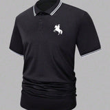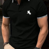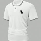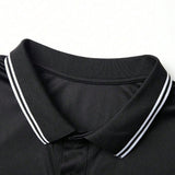 Manfinity dauomo camiseta tipo polo de manga corta con bloques de color, abotonadura y estampado de caballero para hombre de talla grande