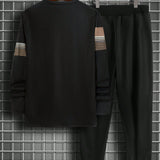 Manfinity homme conjunto de camiseta de manga larga y pantalones con rayas de contraste para hombre