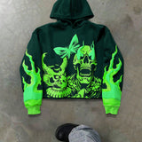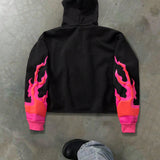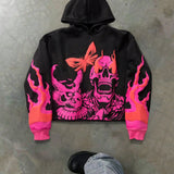 Manfinity emrg sudadera con buzos con capucha de espuma 3d en color negro con diseno de calavera con llamas color rosa y mariposas de la marca manfinity legnd para hombre