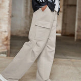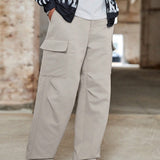 Manfinity streetrush pantalones sueltos y rectos de utilidad multibolsillo de estilo retro manfinity streetrush para hombres, de unicolor versatil, de moda, de estilo cargo, regalo para novio