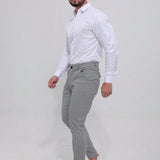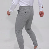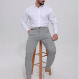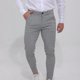 Allelms pantalones de hombre ajustados tipo chino de color gris claro a cuadros con estiramiento