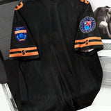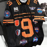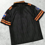 Sporsity camiseta de polo de baloncesto/tenis de malla con bloqueo de colores negro y naranja, estampado numerico y de letras con estilo universitario deportivo de holgada para hombre