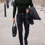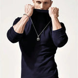 Camiseta de manga larga de cuello alto informal, comoda y calida, para hombres, para otono/invierno