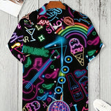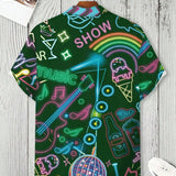 Manfinity hypemode camisa holgada para hombre de talla grande con estampado de arcoiris e instrumentos musicales