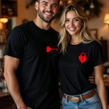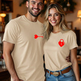 Manfinity homme camiseta de manga corta y cuello redondo ajustada para hombre, con estampado divertido de corazones y llaves, de estilo casual y a la moda, ideal como regalo para el novio en el dia de san valentin