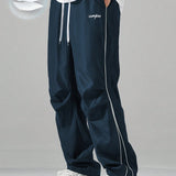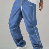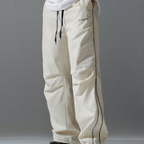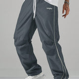 Manfinity hypemode pantalones casuales rectos y holgados con cordon en la cintura y bolsillos para hombres con estampado de letras