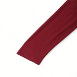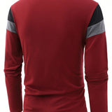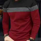 Camiseta de manga larga de cuello redondo con bloques de color casual, estilo basico y versatil para deportes, hogar, vacaciones, primavera/otono