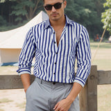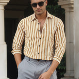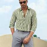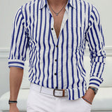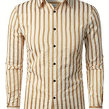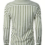 Camisa casual de manga larga de rayas y de una sola hilera de botones para hombre, otono