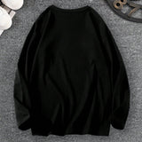 Camiseta de manga larga con cuello redondo y estampado de letras y graficos para hombres de talla grande