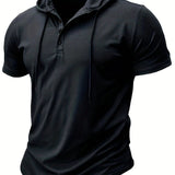 Camiseta deportiva de manga corta con buzos con capucha y cordon para hombres de talla grande