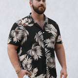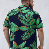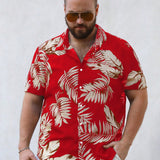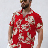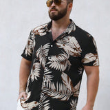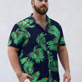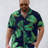 Manfinity rsrt camisa casual de manga corta de una sola hilera con estampado tropical para hombres de talla grande