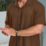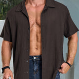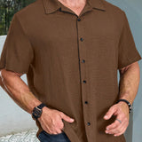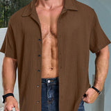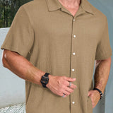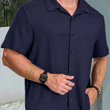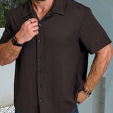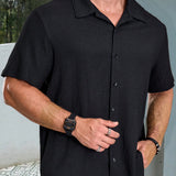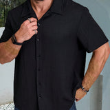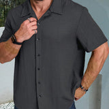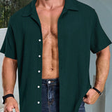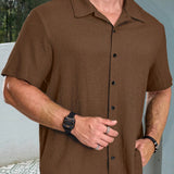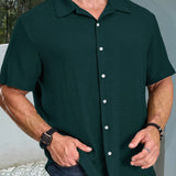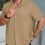 Manfinity homme camisa casual de talla grande para hombre con cierre de botones frontales y manga corta de unicolor