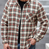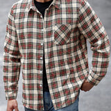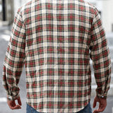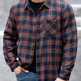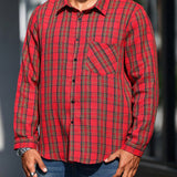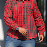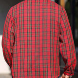 Manfinity casualmax blusa informal con bolsillo, manga larga y botones al frente a cuadros, para uso diario, talla grande