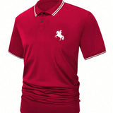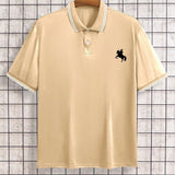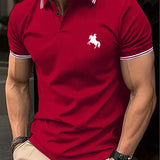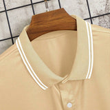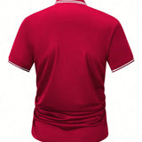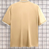 Manfinity dauomo camisa polo casual de manga corta con botones al frente y parches de unicolor para hombre de talla grande