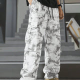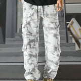 Manfinity emrg pantalones cargo casuales de hombre con cintura con cordon y estampado de tenido anudado
