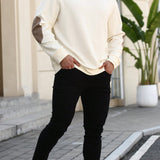 Manfinity homme sudadera informal de cuello redondo de manga larga con parches de unicolor talla grande para hombres