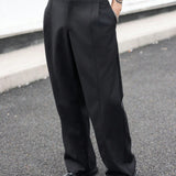 Manfinity hypemode pantalones casuales de pierna ancha con pliegues y bolsillos de unicolor para hombre