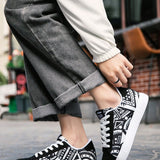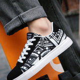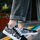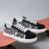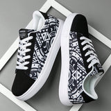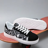 Zapatos de patinaje con estampado geometrico aleatorio y estilo de retazos con cordones para hombre, zapatillas casuales de uso diario para pareja, ideales para caminar y actividades al aire libre
