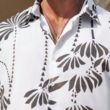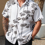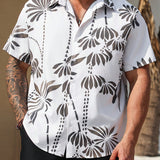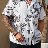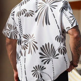 Manfinity resortease camisa casual de manga corta con botones y estampado de plantas para hombre