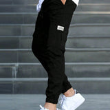 Pantalones cargo casuales con estampado de letras, cordon en la cintura y multiples bolsillos para hombres