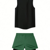Manfinity sport corelite conjunto deportivo casual de chaleco y pantalones cortos para hombre, simple y de moda para uso diario