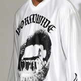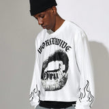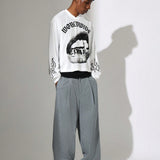 Sumwon camiseta de saten de manga larga con escote en v y diseno grafico grande, de corte ajustado