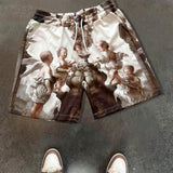 Manfinity emrg pantalones cortos casuales de hombre con cintura de cordon y estampado de angel