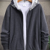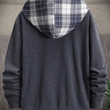 Manfinity homme sudadera con buzos con capucha con cremallera de talla grande para hombres, estilo parche de cuadros, sudadera casual para otono e invierno
