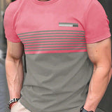 Manfinity dauomo camiseta casual de hombre de manga corta, cuello redondo, con estampado a rayas, de corte holgado