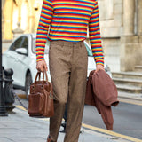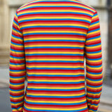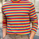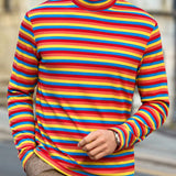 Manfinity modagents camiseta de cuello alto de punto con mangas raglan a rayas arcoiris para hombres, adecuada para el otono