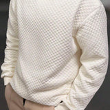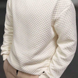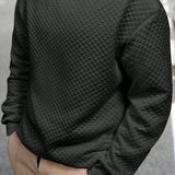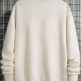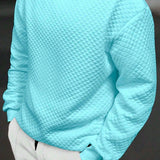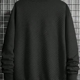 Sudadera de cuello redondo de manga larga con textura de gofre, basica y casual, para hombres de talla grande