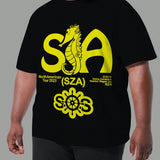 1 pieza camiseta casual con grafico de letra y caballito de mar para hombre de talla grande, apropiada para todas las estaciones