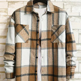 Camisa casual de manga larga a cuadros talla grande para hombres