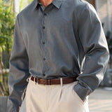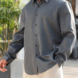 Manfinity homme blusa de manga larga con botones delanteros y cuello, de unicolor, para uso casual diario, tallas grandes
