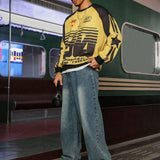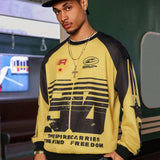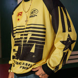 Manfinity streetrush sudadera casual de hombre con estampado de parches y bloques de color, para otono/invierno
