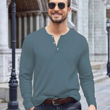 Camisa de henry de manga larga de unicolor y cuello redondo para hombres, nueva en primavera y otono, camiseta deportiva para hombres