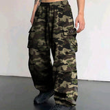 1 pieza pantalones cargo multi-bolsillo con camuflaje para hombres, pantalones sueltos de estilo hip-hop con cordon, pantalones casuales para deportes al aire libre, primavera y otono