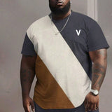 Conjunto grande casual de calle de talla grande para hombres, con estampado asimetrico de bloques de color
