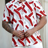 Manfinity homme camisa casual de manga corta con estampado geometrico de color contrastante para hombres de talla grande