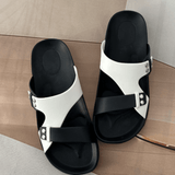 Chanclas casuales para hombres de diseno sencillo a dos colores y parches, diseno de pareja, duraderas y antideslizantes para playa, bano y hogar